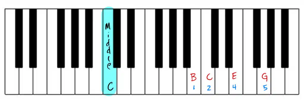 We’re going to use the same 3 notes… B-C-G… but now we’re going to add the E into the mix.