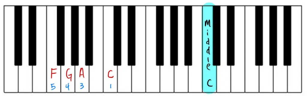 Now, place your right hand where we’ve been playing all week with your 2nd finger on the C above middle C.